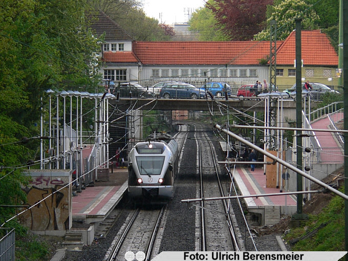 ET 23004 in Essen Süd (mit neuen Bahnsteigen) Fahrtrichtung Düsseldorf
