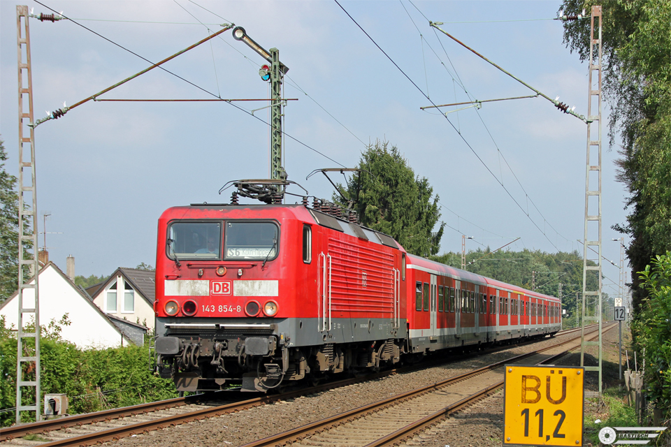 4.September 2014 - 143 854 - Kurz vor dem Bahnübergang Rosenstrasse in Ratingen - Fahrtrichtung Düsseldorf